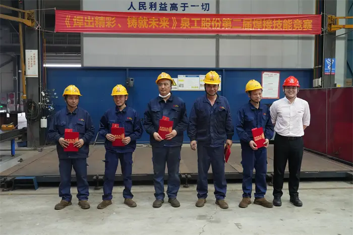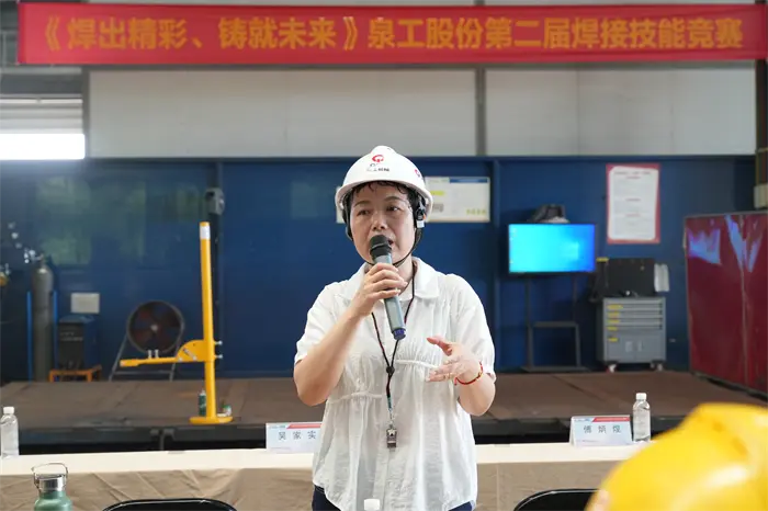 Alors que le concours était sur le point de se terminer, M. Fu Binghuang, président de la société, a prononcé un discours. Il a déclaré : La tenue réussie du 2e Concours de compétences en soudage de Quangong Co., Ltd. en 2025 a jeté les bases permettant à l'entreprise de former d'excellents soudeurs qualifiés et a construit une plate-forme d'exposition permettant aux employés d'échanger des technologies et de montrer leurs compétences. Il a fait jouer pleinement le rôle typique de démonstration des pionniers des compétences, ce qui est propice à la création d'une équipe de talents de haute qualité avec une orientation idéologique correcte, une qualité de production de produits de première classe et des normes de fonctionnement pratiques, améliorant ainsi globalement la compétitivité de base de l'entreprise, favorisant le développement stratégique de l'entreprise plus rapidement et mieux et s'efforçant de construire une vie meilleure !
