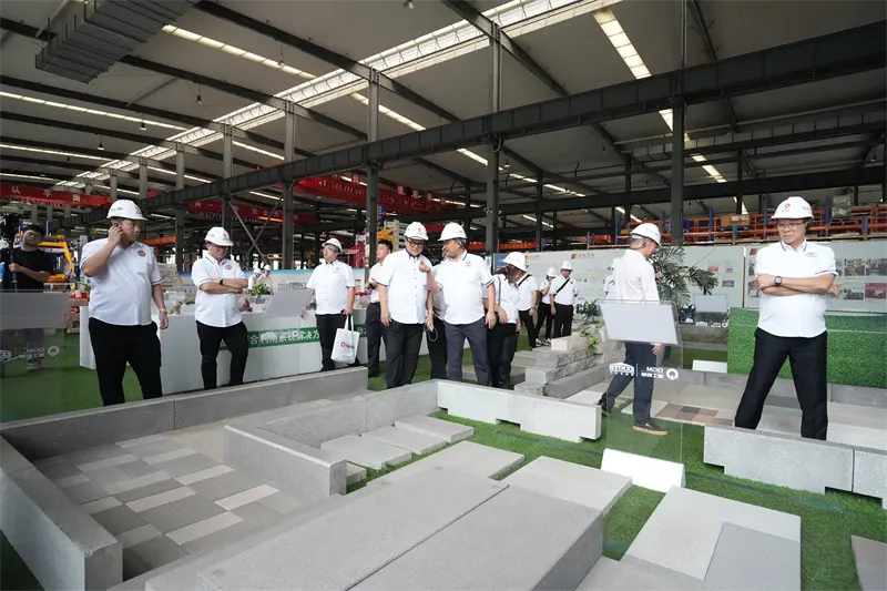 Dans la zone d'exposition d'échantillons de briques, diverses briques perméables, briques imitation pierre et matériaux de construction recyclés solides ont attiré l'attention du groupe de visiteurs. Fu Binghuang, président de Quangong Machinery Co., Ltd, a expliqué que grâce à la recherche et au développement technologiques, Quangong Machinery Co., Ltd. transforme les déchets tels que les déchets de construction et les résidus en matériaux de construction à haute valeur ajoutée et respectueux de l'environnement, éliminant plus de 10 millions de tonnes de déchets solides par an. Le président Liu Guoquan a inspecté la résistance et la perméabilité des échantillons de briques, saluant la pratique de QGM consistant à « transformer les déchets en trésor » comme un « modèle d'économie circulaire ».