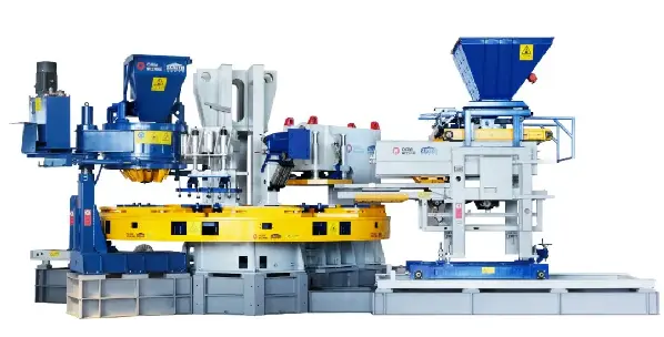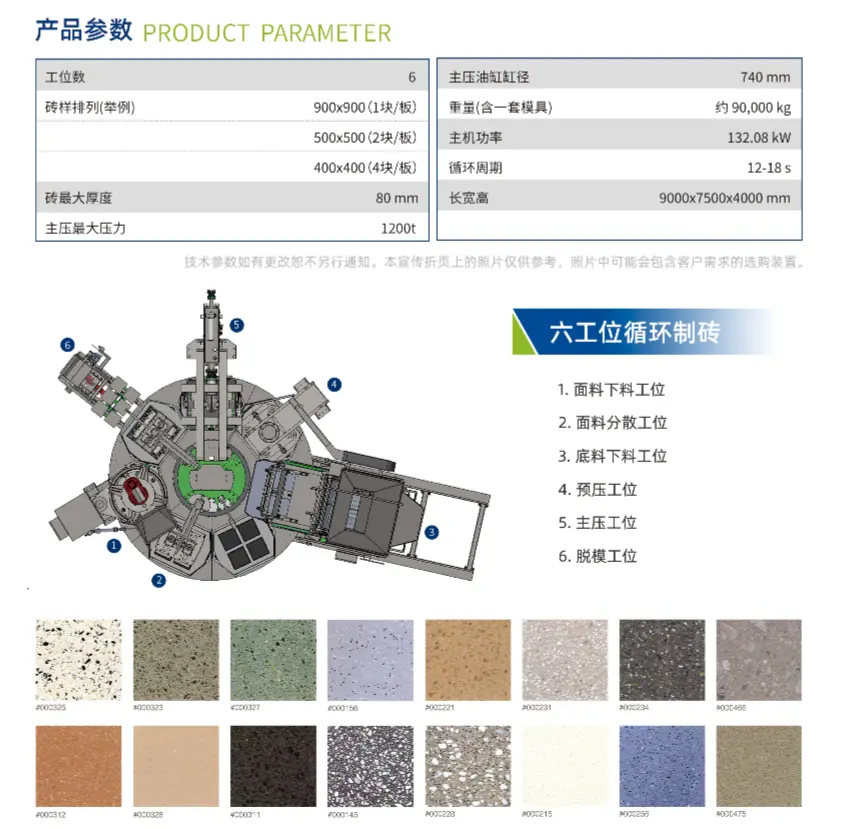 La presse statique à table rotative HP-1200T sépare de manière créative le processus de fabrication de briques en 7 stations, disposées selon une disposition circulaire, réduisant ainsi l'espace au sol, et dispose d'une grande zone de moulage et d'une grande plage de hauteur de moulage, garantissant que les diverses exigences des clients en matière de blocs de béton imitation pierre sont satisfaites, comblant ainsi le vide des machines rotatives domestiques à sept stations pour briques imitation pierre. Sa norme de groupe formulée « T/CCMA 0125-2022 Machine de formage de blocs de béton à presse statique multistation rotative » a été sélectionnée comme l'un des 100 projets de démonstration d'application standard de groupe du ministère de l'Industrie et des Technologies de l'information en 2023.