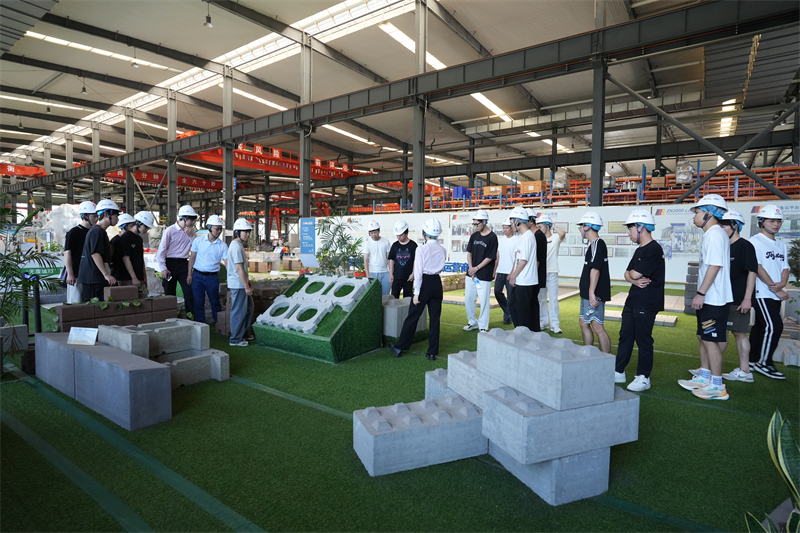 Dans l’atelier de production, les étudiants ont observé de près la chaîne complète de production d’éco-briques. Du traitement précis des matières premières au processus complexe de production du produit fini, chaque étape démontre l’efficacité et la précision de la production automatisée. Les équipements de production avancés fonctionnaient sans problème et les processus automatisés efficaces amélioraient considérablement l'efficacité de la production, tandis qu'un système de contrôle qualité strict garantissait une qualité élevée des produits. Les étudiants s'arrêtaient fréquemment pour observer, exprimant un vif intérêt pour le modèle de production moderne.