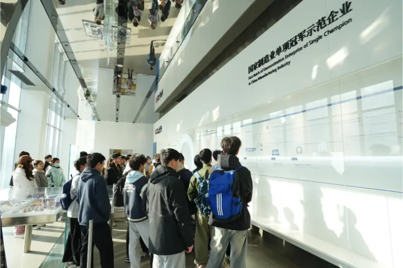 Par la suite, les enseignants et les étudiants ont visité l'atelier d'usinage, entrant ainsi aux premières lignes de la fabrication intelligente. Dans l'atelier, les centres d'usinage CNC et les lignes d'assemblage automatisées fonctionnaient à grande vitesse, les bras robotiques effectuaient avec précision diverses opérations, et le système de production numérique affichait les données de progression de la production et de contrôle de la qualité en temps réel, démontrant l'effet synergique d'une « usine verte » et d'un « atelier intelligent ». Les experts techniques de l'entreprise ont guidé les enseignants et les étudiants tout au long du processus, depuis le traitement des matières premières jusqu'à l'assemblage des équipements, en se concentrant sur l'explication de l'application de technologies clés telles que l'interconnexion des équipements CNC et la détection précise de l'état de production. Les étudiants ont activement collaboré avec les experts techniques, discutant de questions telles que l'optimisation du traitement et les techniques de maintenance des équipements, créant ainsi une forte atmosphère d'apprentissage sur place.