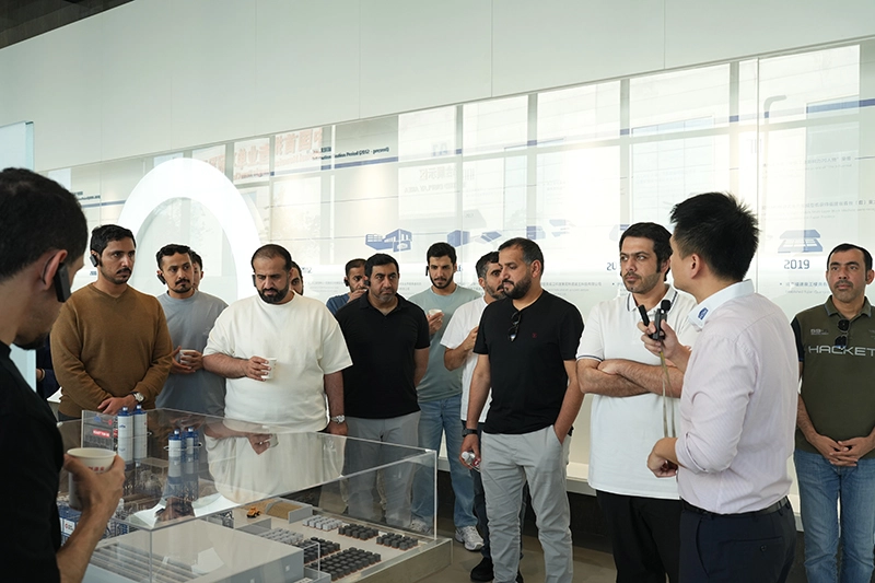 Au centre de contrôle de l'Intelligent Equipment Cloud Service Platform, la délégation a observé un scénario intelligent d'exploitation et de maintenance démontrant comment les équipements peuvent être surveillés à distance. En tant qu'innovation fondamentale de Quanzhou Machinery, cette plate-forme intègre des technologies de pointe telles que le cloud computing, le big data et l'intelligence artificielle. Il peut collecter des données opérationnelles en temps réel provenant de plus de 1 000 unités d’équipements intelligents dans le monde, permettant ainsi des fonctions de gestion complète du cycle de vie, notamment la surveillance en ligne, les mises à niveau à distance, la prédiction et le diagnostic des pannes, ainsi que l’évaluation de l’état des équipements. Les membres de la délégation se sont enquis des cas d'application de la plateforme et de la rapidité de réponse des services au Moyen-Orient, louant vivement ses solutions d'exploitation et de maintenance efficaces et peu coûteuses pour les clients étrangers. Ils pensaient que cette technologie répondait parfaitement à la demande du secteur des infrastructures des Émirats arabes unis en matière d'équipements intelligents et efficaces.
